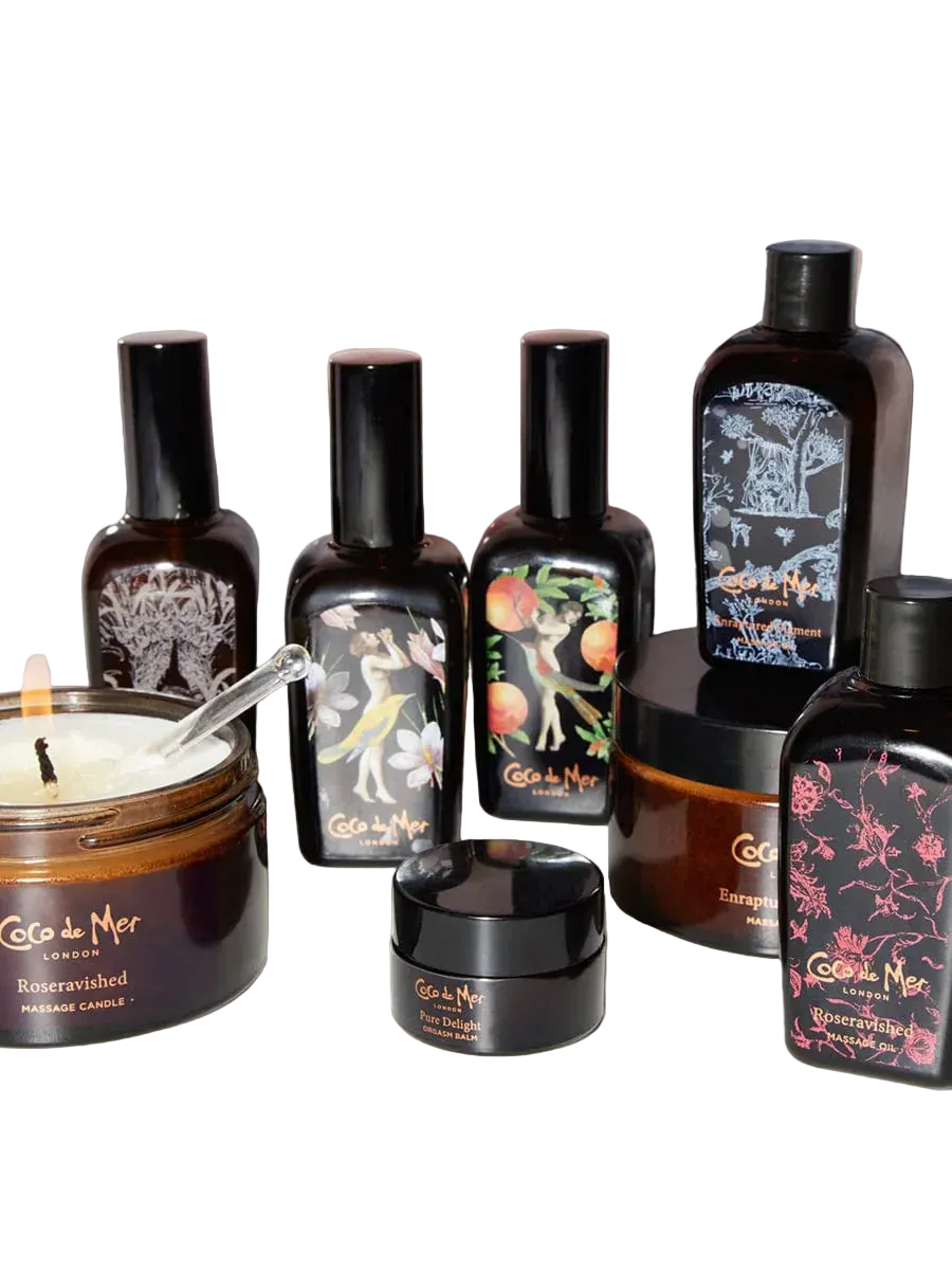 Our collection includes luxury lingerie, elegant nightwear, sensual jewelry, premium pleasure toys, high‑end BDSM leather, massage & body care, and couture stockings — all selected for exceptional quality and a deeply intimate experience.