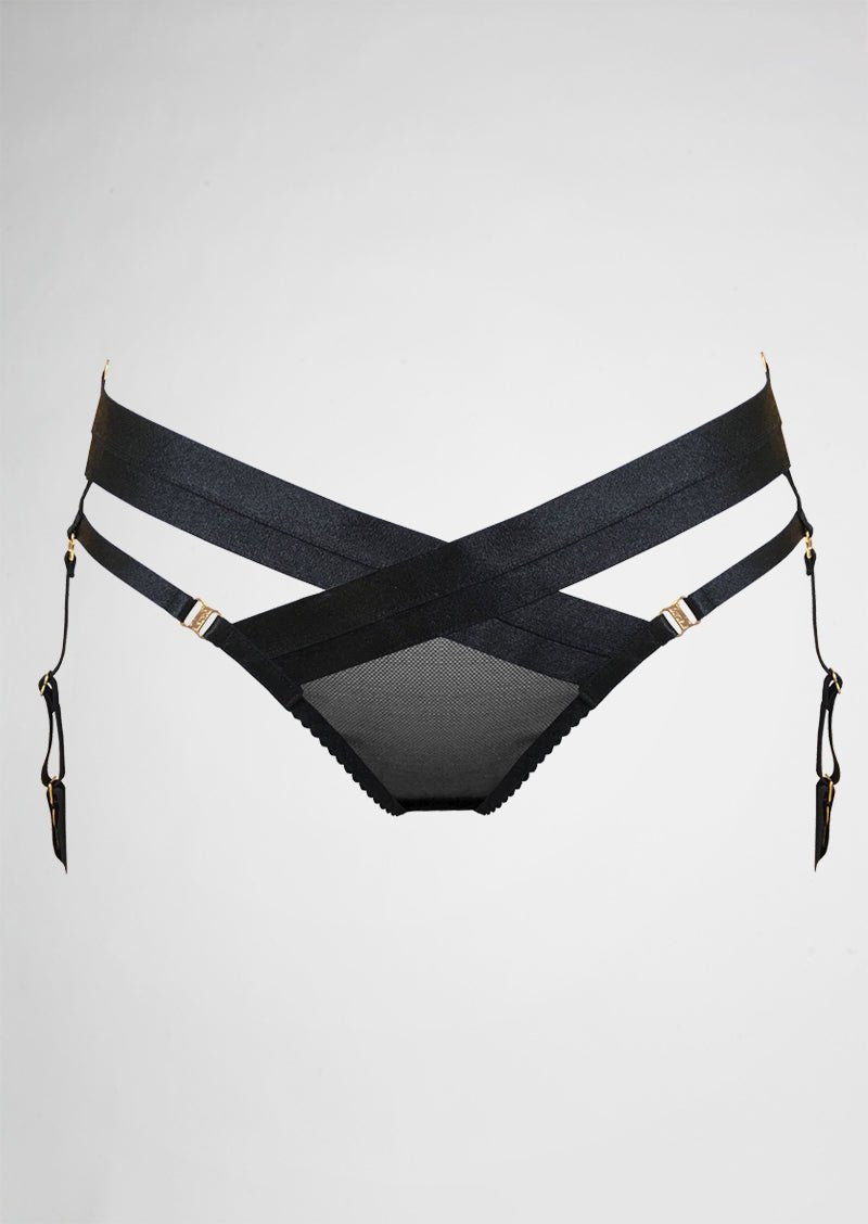 De Bordelle Tomoe Harness Brief is een stijlvolle evolutie van de klassieke Harness Open Brief. Hij beschikt over open delen die bedekt zijn met comfortabele doorschijnende mesh, waardoor hij geschikt is voor dagelijks gebruik terwijl hij zijn sexy aantrekkingskracht behoudt. Het exquisite ontwerp trekt aandacht en zorgt ervoor dat je opvalt in elke situatie. Met een perfecte balans tussen verfijning en sensualiteit, verrijkt deze brief je lingeriecollectie. Afneembare suspenderbanden voegen extra aantrekkingskracht toe aan dit opvallende stuk. Geniet van zowel comfort als sexiness met de Tomoe Harness Brief. Deze panty perfectie is een must-have voor degenen die unieke lingerie waarderen. Verhoog je garderobe met dit uitzonderlijke ontwerp van Bordelle.