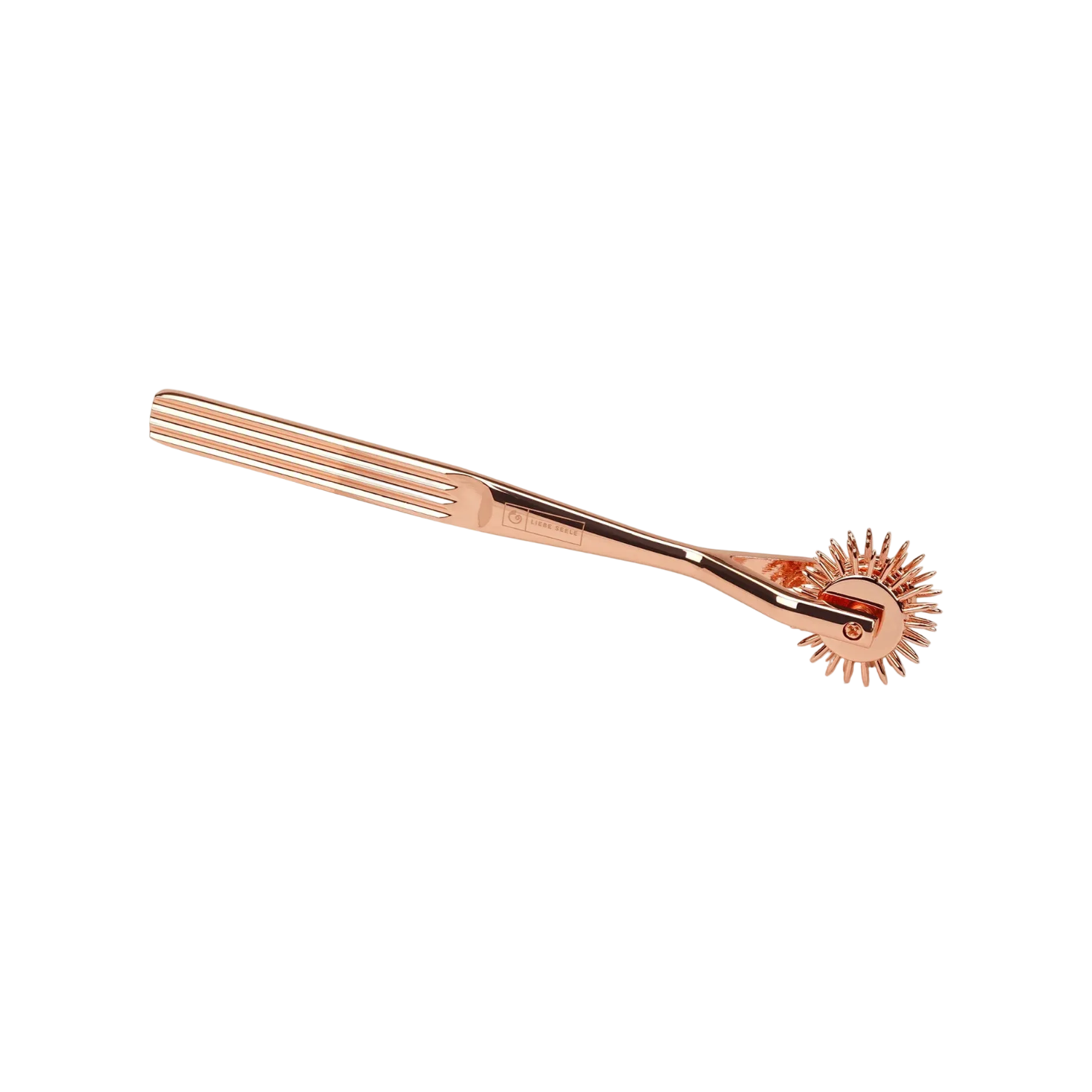 Originally a neurological diagnostic tool, the Wartenberg Pinwheel has become one of BDSM’s most beloved sensation play instruments. The Liebe Seele X-Rose Triple Row Wartenberg Pinwheel in Rose Gold takes the experience further with three rows of precision-crafted metal wheels. Heavy, cool to the touch, and deeply stimulating — this is sensation play elevated to an art form.