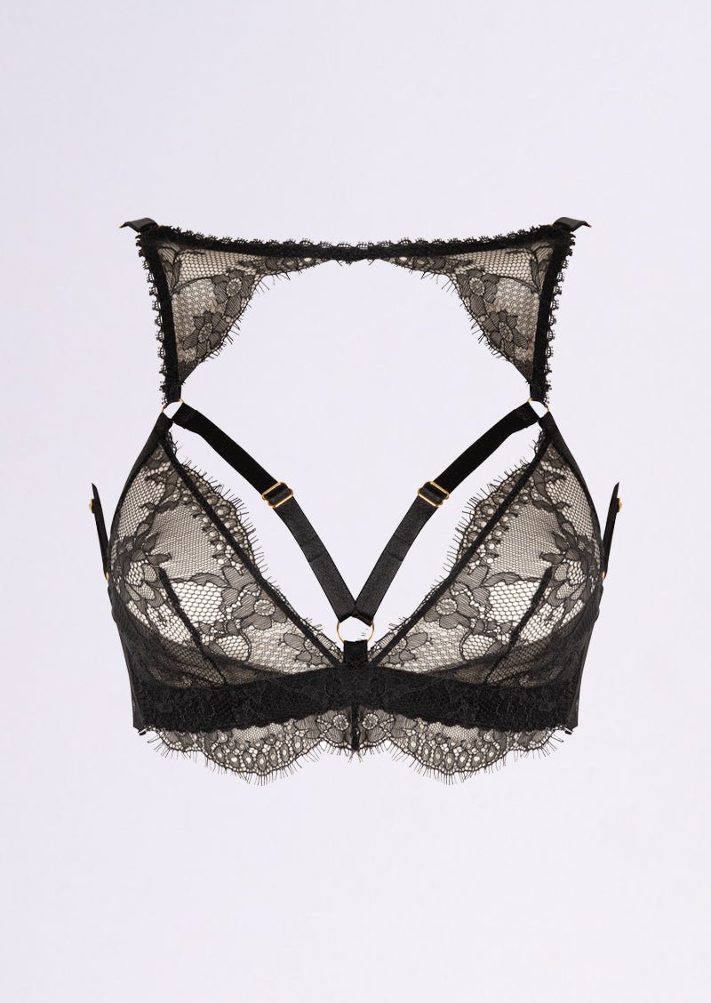 De No Cup Club Bralette van Pleasurements biedt ongeëvenaard comfort met niet-gewatteerde cups die mooier zijn dan andere bralettes. Deze bralette heeft satijnen elastische banden voor subtiele, comfortabele ondersteuning en een sexy strap-look. Het delicate, doorschijnende Franse bloemenkant maakt deze soft cup beha onweerstaanbaar. De halterontwerp accentueert je decolletés zonder deze volledig te onthullen. Perfect voor wie een verleidelijke uitstraling wil zonder in te boeten op comfort. Deze bralette combineert stijl en functionaliteit op een prachtige manier. Het is een ideale aanvulling voor elke lingeriecollectie. Verwen jezelf met de unieke charme van de No Cup Club Bralette.