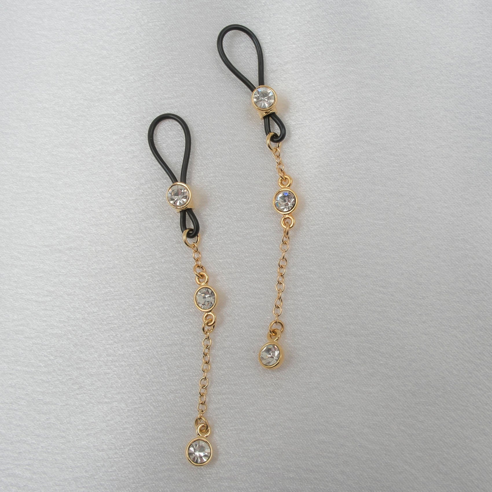 Je borst wordt verrijkt met een gouden en kristallen sieraad, zowel sexy als verfijnd. De delicate ketting versierd met kristallen beweegt gracieus bij elke beweging. Goud streelt zachtjes je huid. Beschrijving: Niet-piercing tepel accessoires, pijnloos en verstelbaar, geschikt voor alle maten. Hoogwaardige vergulding van 1 micron 16 karaat, met een 24-karaats afwerking op metaal. Gemaakt van facetgeslepen kristallen en kettingen, het is ook hypoallergeen.