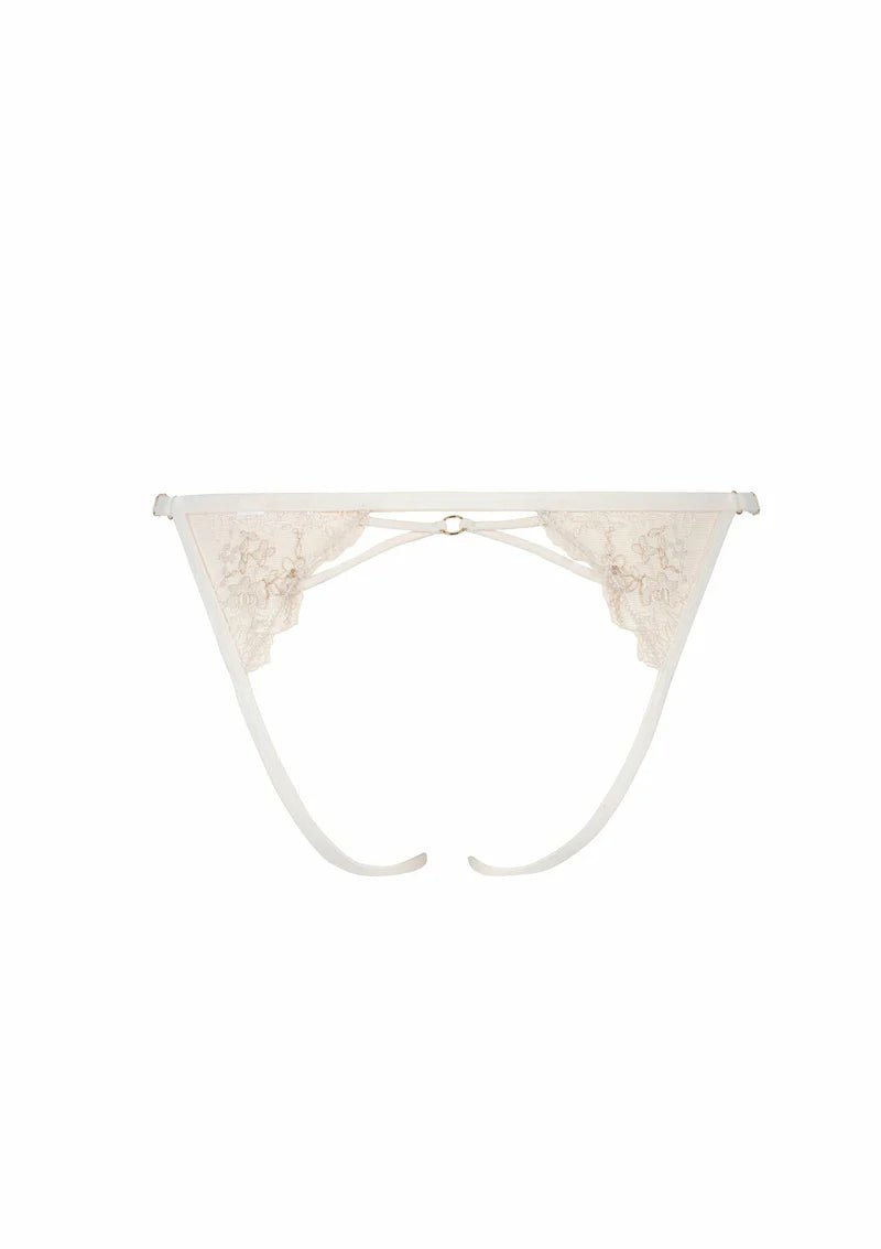 Après Minuit Open Brief – Ivory seduces with sheer ivory tulle delicately embroidered in shimmering threads. Designed with an open cut that reveals with daring transparency, this brief embraces the hips with Parisian elegance. Luxurious fabrics and refined detailing make it a bold statement piece within the Après Minuit collection, perfect for nights of allure.