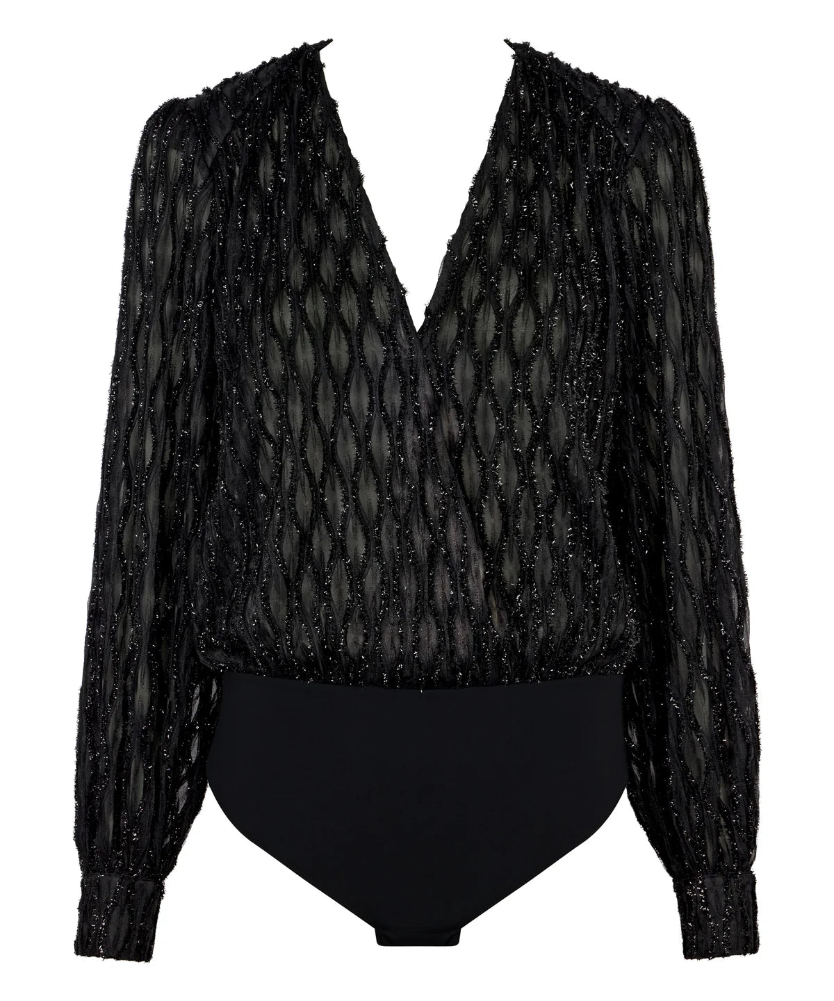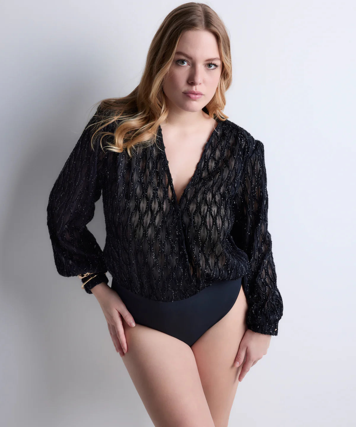 Inspired by the graceful lines of ballet, the Les Bodys from Aubade’s Black Elegance collection embody refined sensuality and modern sophistication. The square neckline and delicate gold accents on the straps reveal subtle glimpses of skin, adding a touch of allure. Crafted from soft ribbed fabric, the body hugs the curves with comfort and elegance. The back is just as striking as the front, designed to impress from every angle. Its contemporary cut makes it suitable for both everyday wear and special occasions. French craftsmanship meets modern styling in a piece that feels as luxurious as it looks. The Italian-made fabric caresses the skin while maintaining a sleek silhouette. This body is a celebration of femininity, confidence, and understated glamour.