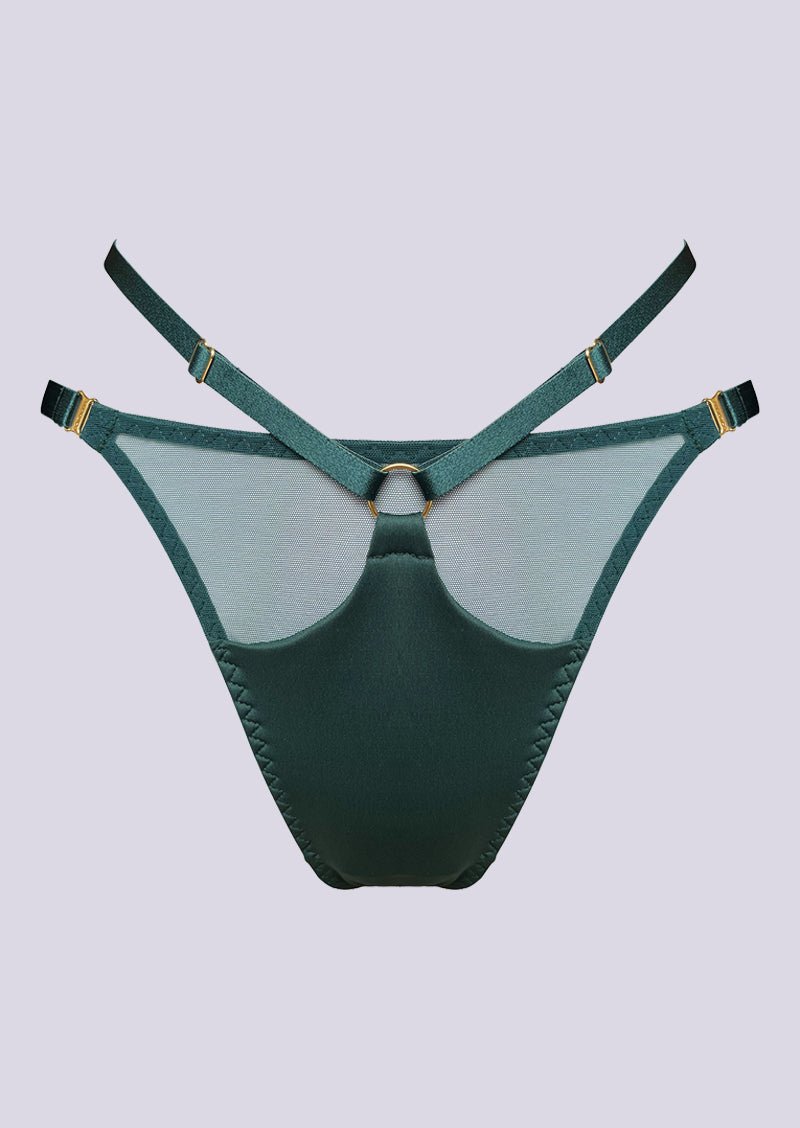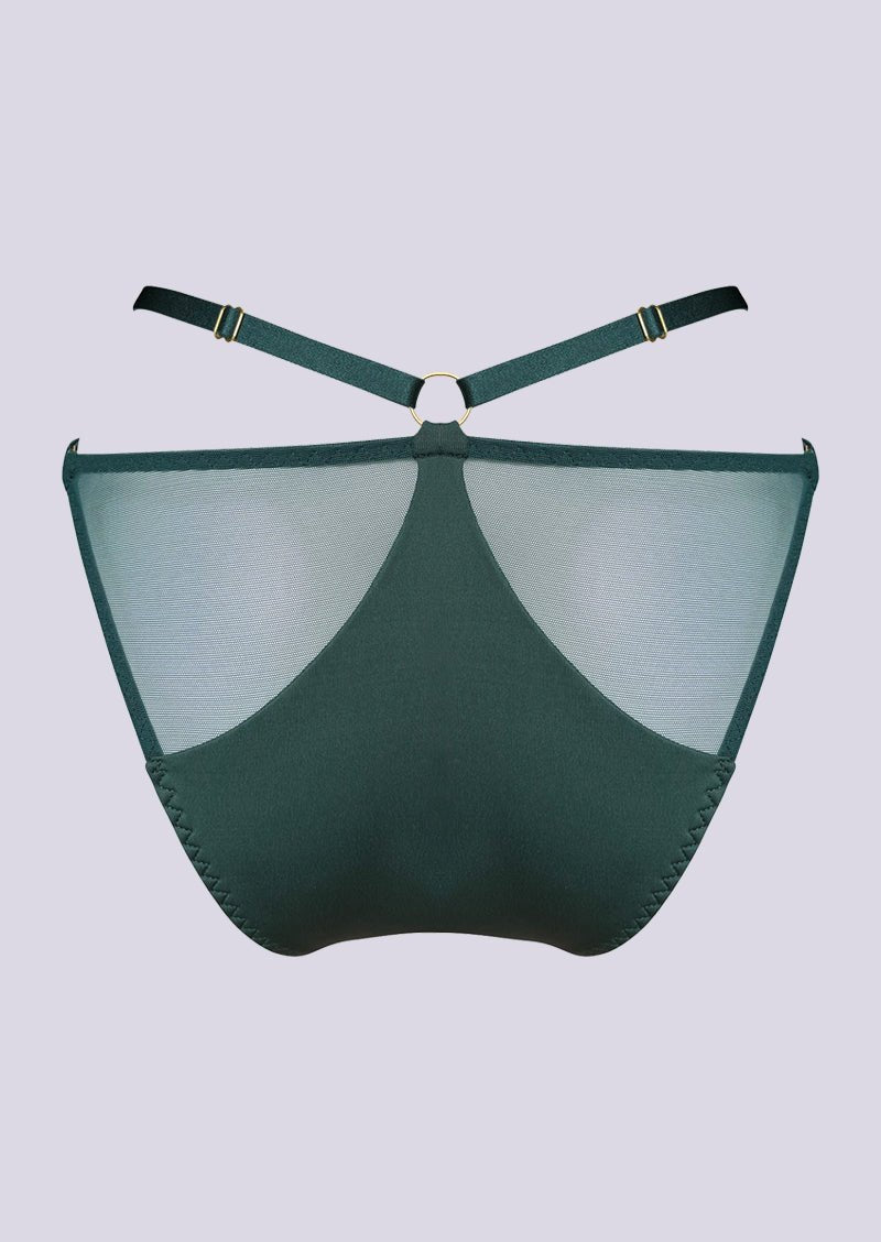 The Vero Brief in Eden is a pinnacle of luxury and allure. This sumptuous brief features subtle see-through accents that elevate ordinary lingerie elegance. Crafted with adjustable straps for a bespoke fit, every detail exudes sophistication. The back showcases a stunning design that commands attention. Immerse yourself in the opulent fusion of luxury and sensuality with this dark green brief, where each nuance is meticulously fashioned. It is designed to elevate your confidence and create an extraordinary statement in style. Experience the perfect blend of comfort and allure with every wear of this exceptional brief.