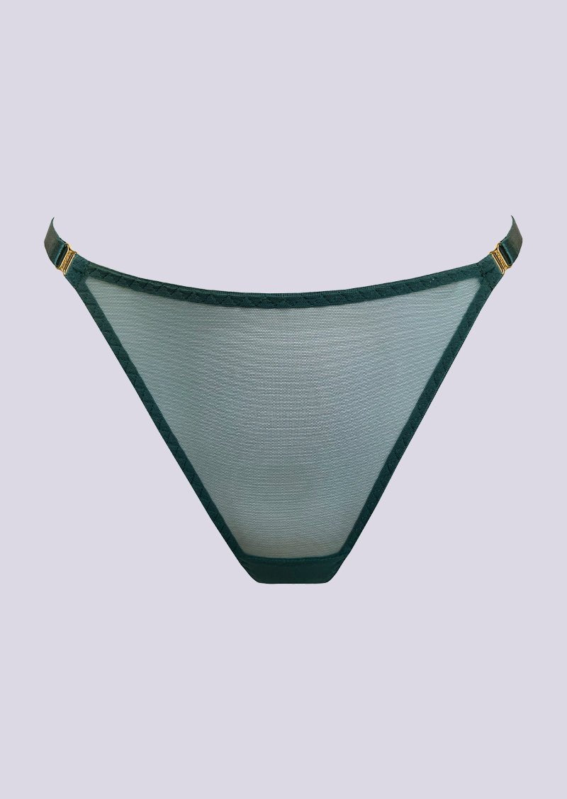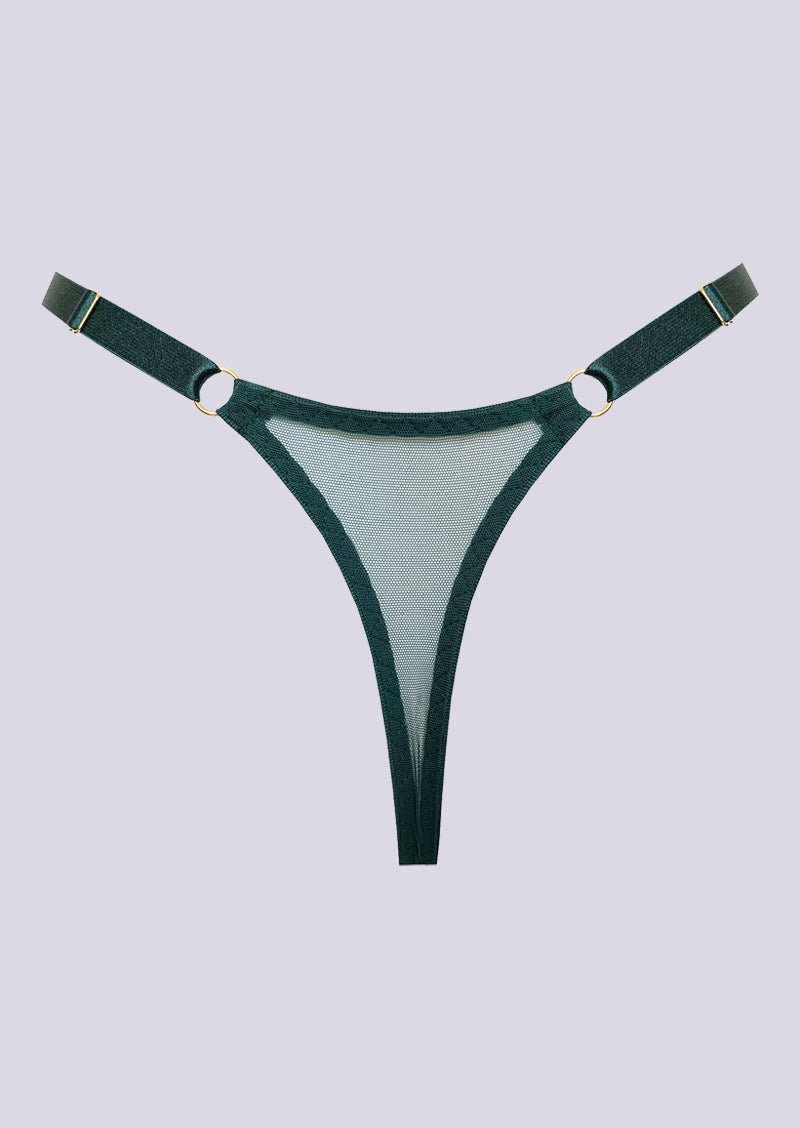 The Vero Thong in the rich Eden hue is a sumptuous addition to your lingerie collection. This exquisite thong features a subtle see-through design, adding sophistication to simplicity. Tailored for versatility, it seamlessly complements other lingerie pieces, allowing you to create a distinctive ensemble. The two adjustable straps ensure a flawless fit, providing a harmonious blend of comfort and style. Elevate your lingerie experience with this understated yet refined Dark Green thong, where simplicity merges with luxury. It serves as the perfect foundation for your personalized lingerie wardrobe. Embrace allure and elegance with every wear.