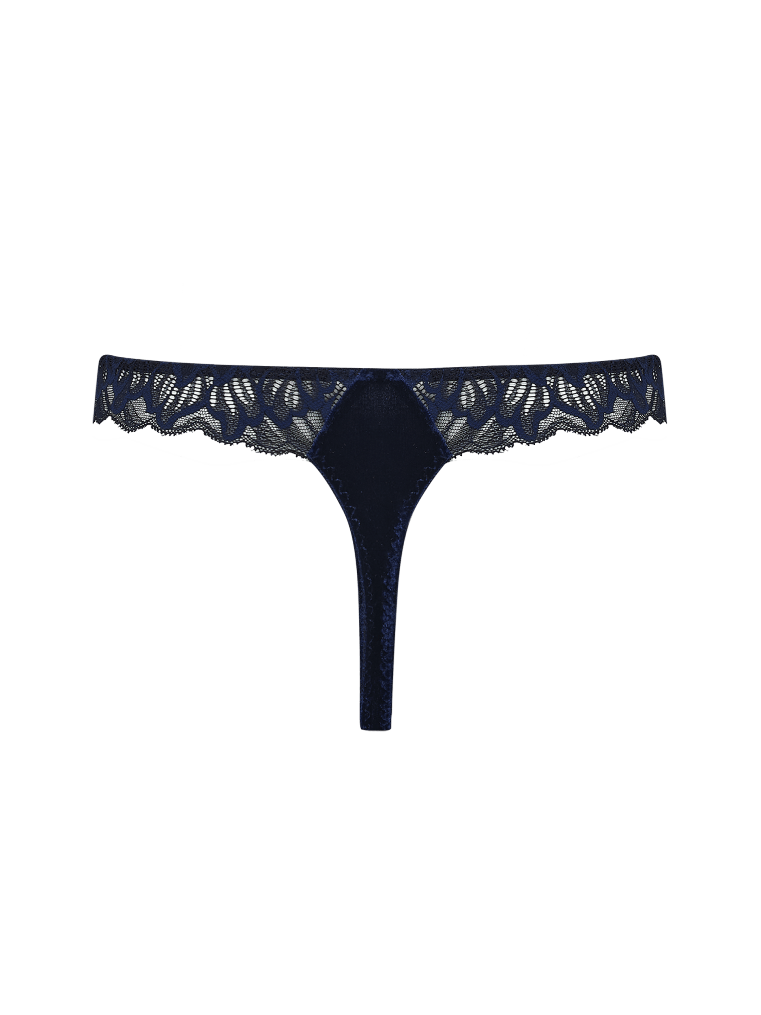 A delightful lace trim runs along the top of the piece, revealing a beautiful scallop across the front and sides. Towards the back, the scalloped edges lift and grace the cheeks, seamlessly blending into an indulgent velvet thong. The design epitomizes elegance and allure, creating a stunning silhouette that celebrates the wearer’s natural beauty.