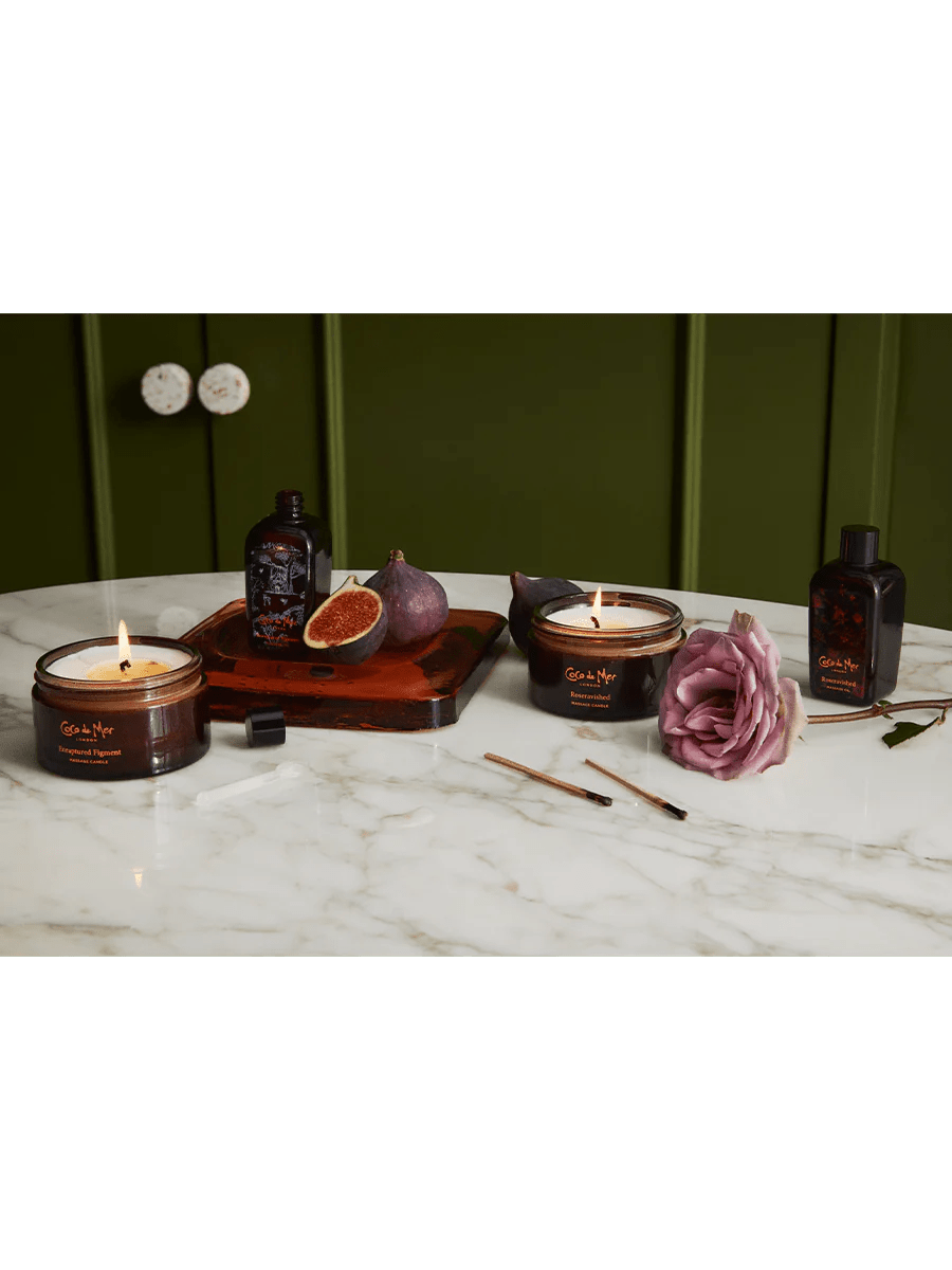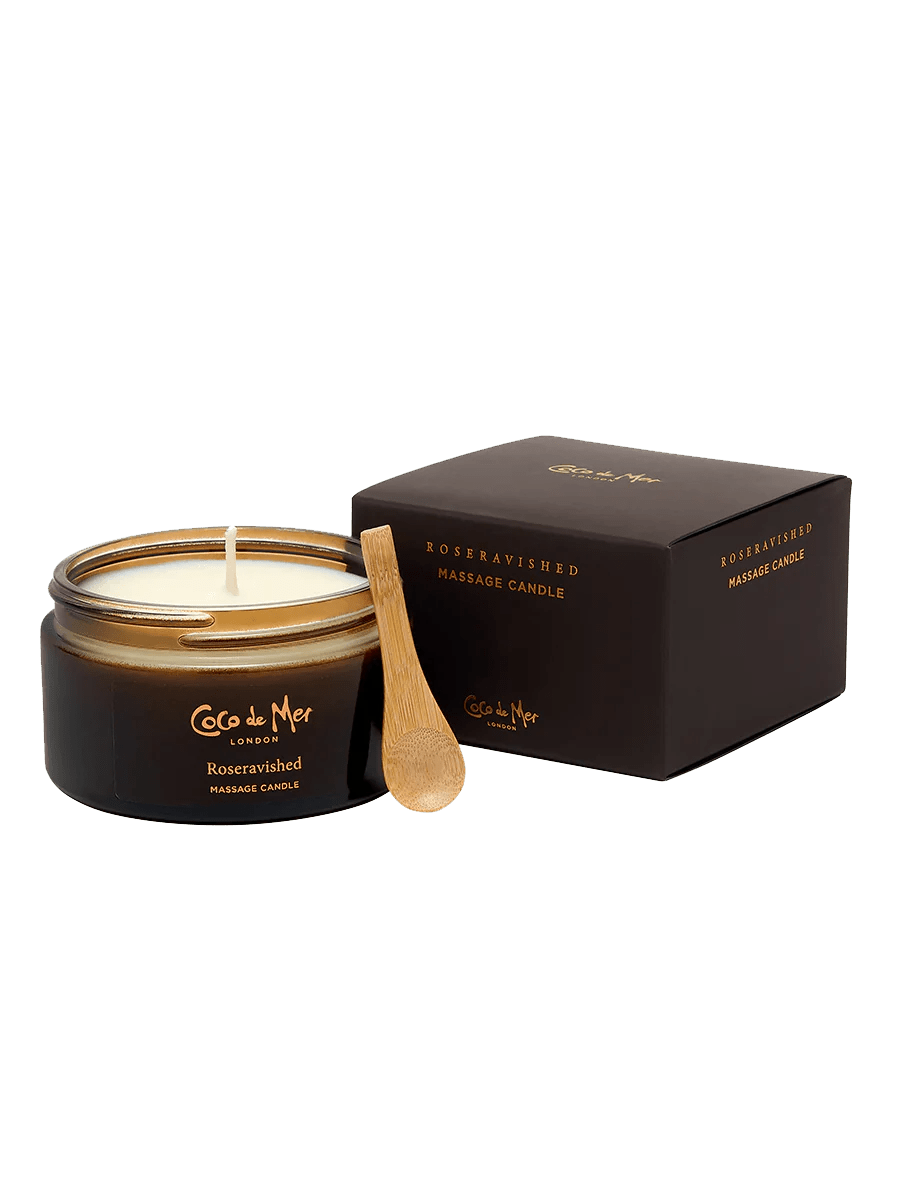 Immerse yourself in bliss with a rich, aromatic massage candle infused with the enchanting scents of rose and sandalwood to stimulate your senses. Light the candle and let it melt, filling the air with its sensual fragrance. Use the serving spoon to drizzle the warm, luxurious oil over your skin or your lover’s, soothing and arousing as it glides over the body. Discover all the other products in this collection. Coco de Mer proudly presents Intimate Play, a collection of luxury lubricants, massage candles, and oils. This exquisite range of sexual wellness products is carefully crafted with invigorating fragrances to seduce your senses and relax your mind, body, and soul, creating stimulating sensations and unforgettable experiences.