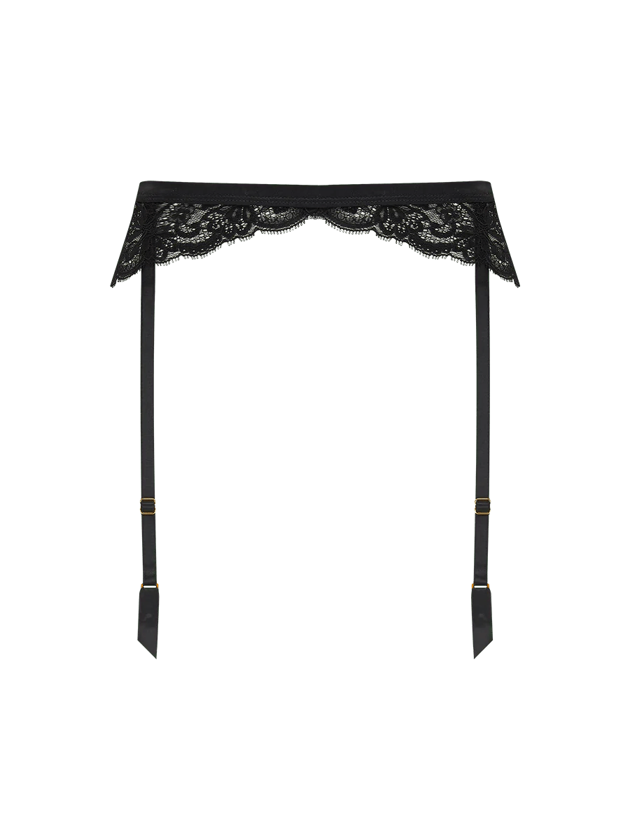 The timeless Seraphine Suspender Belt is the perfect finishing touch to exude the unique confidence that only a matching lingerie set can provide. Accentuating feminine contours, French Leaver's lace graces the waist and dips at the hips, creating a classic suspender silhouette. Gold components, a simple silk waistband, a double hook-and-eye closure, adjustable elastic suspender straps, and satin flashes at the base of each strap showcase luxurious lingerie at its finest. Simply add stockings for glamorous perfection. Complete the enticing ensemble with the Seraphine Plunge Bra, the Seraphine Brazilian Knicker, and your favorite pair of Veneziana stockings.