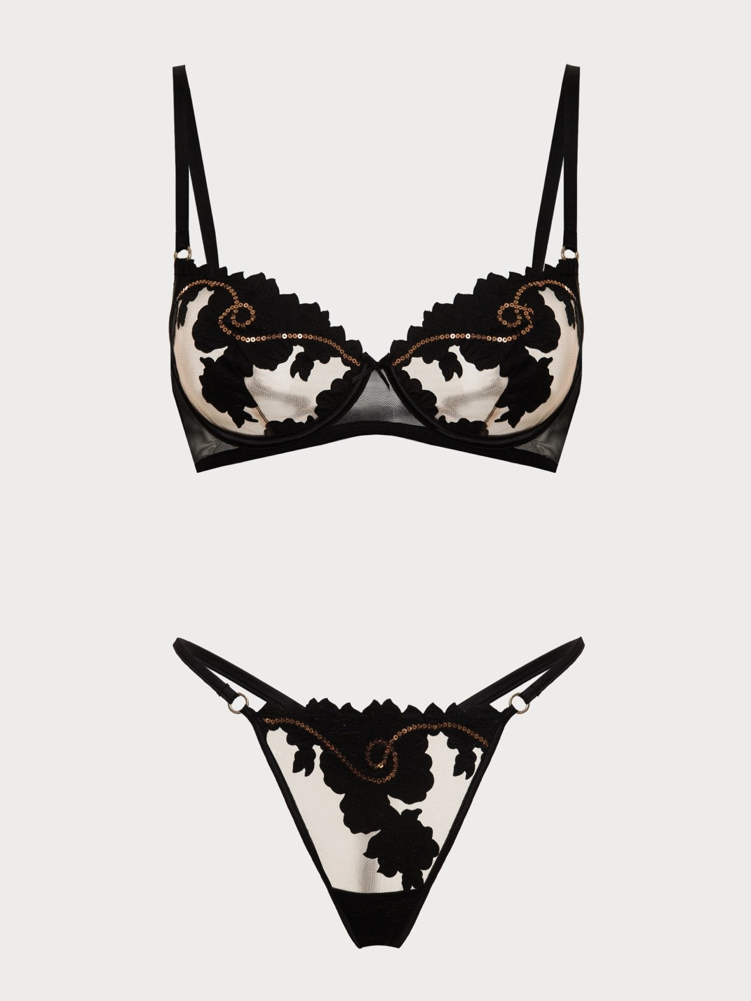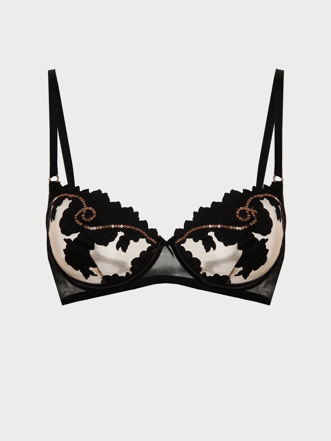Boost your confidence with our Mysthis underwire bra. The beautiful sequins elevate this essential piece into a sparkling addition to your lingerie collection. The underwire provides support, highlighting your natural curves with ease. Designed for those who value sophistication, this bra offers a hint of mystery that captivates admirers. Featuring laser-cut embroidered sequins, it combines comfort and style, making it a great choice for any occasion. Elevate your intimate apparel with this chic and dazzling piece.