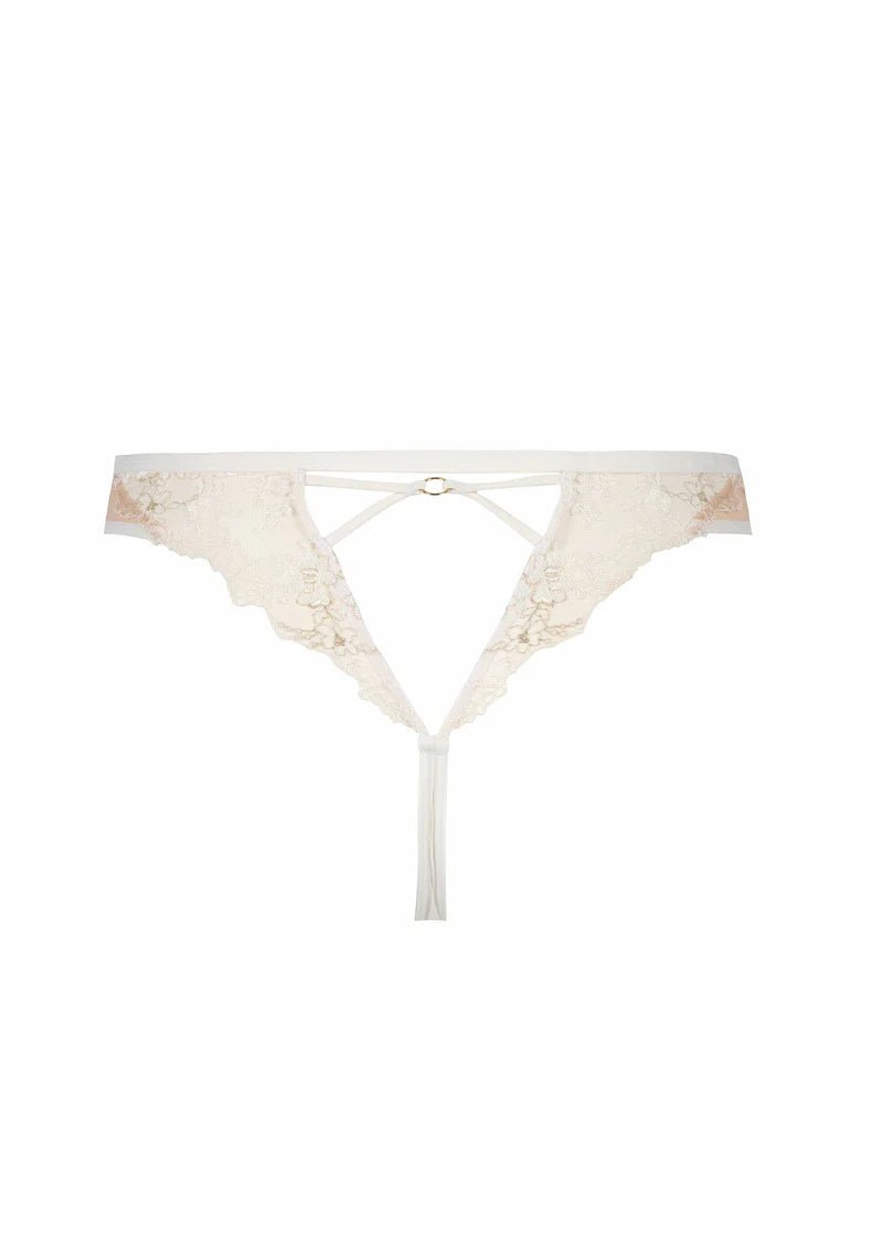 Après Minuit Tanga – Ivory seduces with sheer ivory tulle delicately embroidered in shimmering threads. Designed with a flattering cut that reveals with daring transparency, this tanga embraces the hips with Parisian elegance. Luxurious fabrics and refined detailing make it a bold statement piece within the Après Minuit collection, perfect for nights of allure.